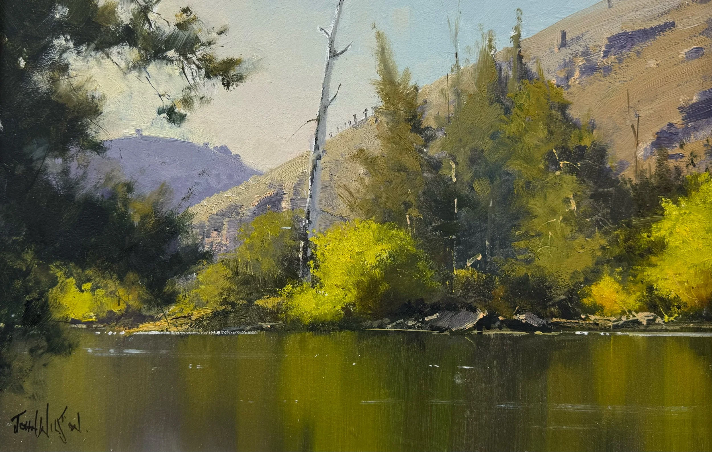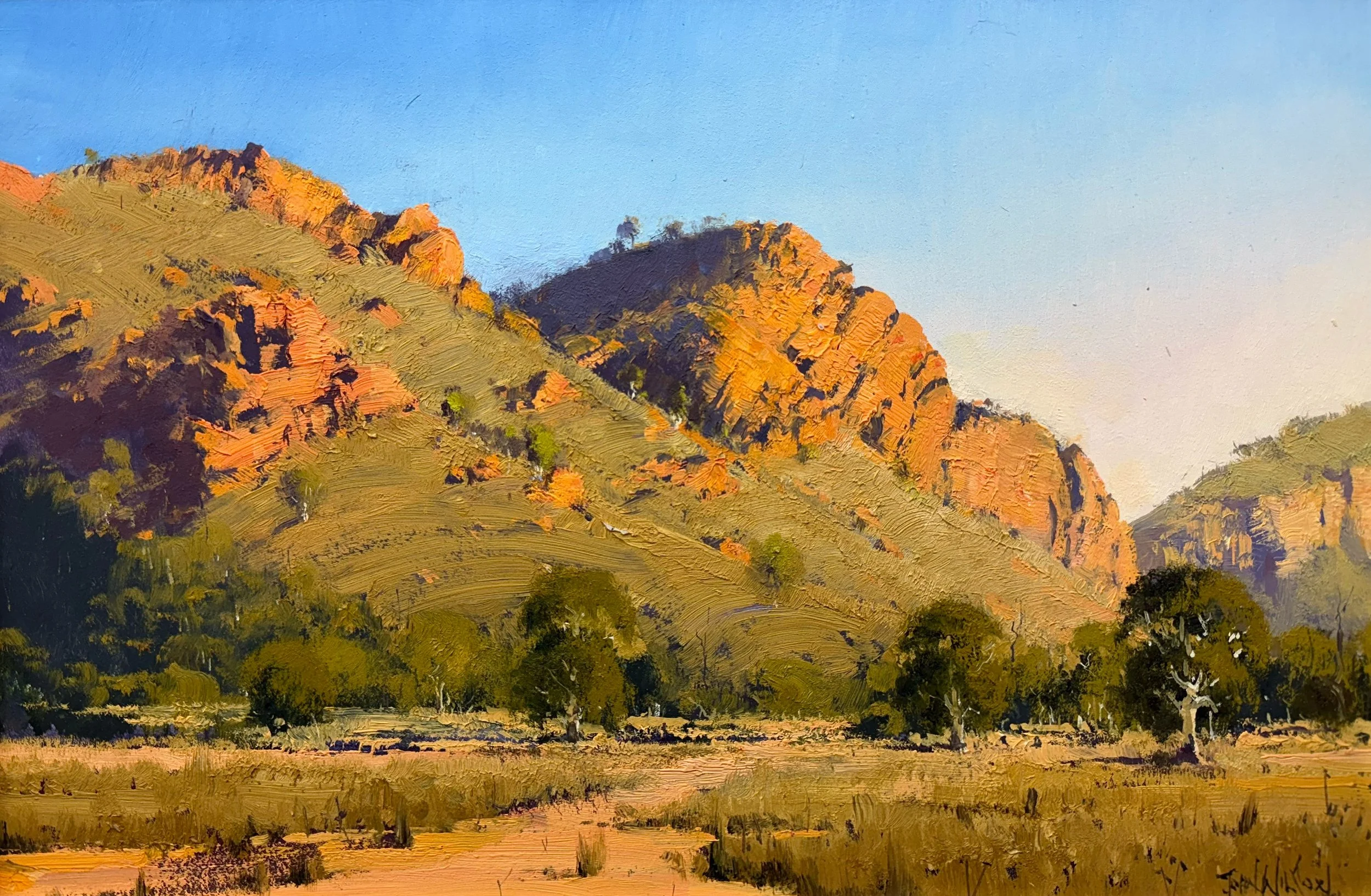 Artworks for sale Riverbend Apple Gums $9,500.00 Tranquillity at the Grange $1,450.00 Autumn Reflections $2,550.00 Morning Light $3,200.00 Capertee Valley Pastoral $2,500.00 Moody Afternoon at Colin's Farm $1,450.00 Moody Afternoon near Bungle $1,450.00 Megalong Pastoral $950.00 Norfolk Island Green $1,450.00 Rock Formations $1,250.00 Moody Afternoon at Capertee Valley $3,800.00 Albert’s Ghost Gums $6,500.00 Rock Formations $2,200.00 Morning Atmosphere $3,850.00 Spring Reflections $2,550.00 Glen Davis Pastoral $1,950.00 Tumut River Reflections $1,250.00 Murray River Warrior $10,500.00 Stzelecki Red $1,250.00 Overlooking Ormiston $5,500.00 Ridge Line & Shadows $3,850.00 Autumn Colours $1,650.00 Gundagai Green $1,650.00 Last Lights $2,950.00 John Wilson The Journey Continues book $70.00 The Art of Landscape Painting with John Wilson DVD $60.00